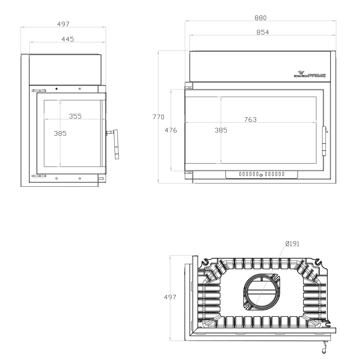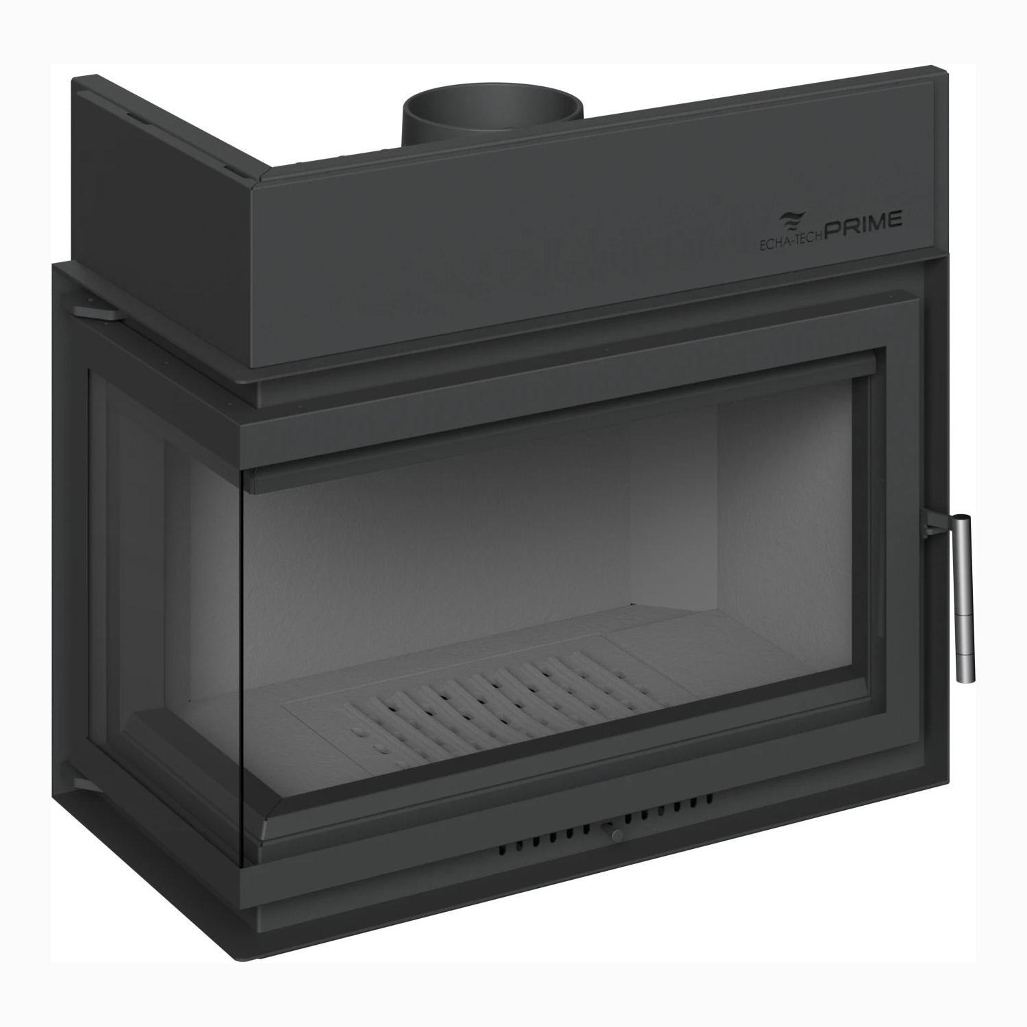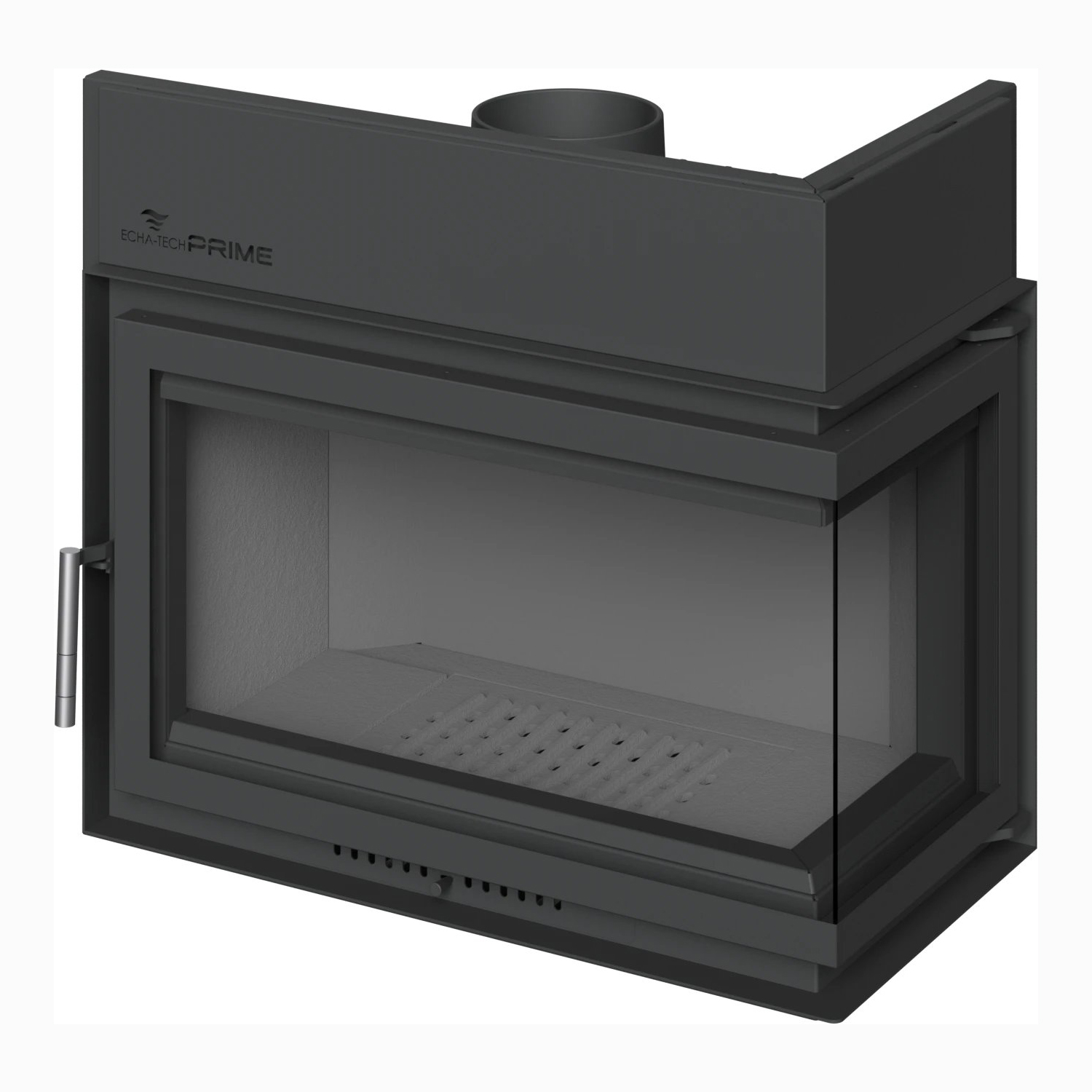 Foyer fermé d’angle en acier ,intérieur en fonte, option vermiculite ou céramique. Origine Turque. Système de feu continu. Porte avec ouverture latérale pour le nettoyage.
