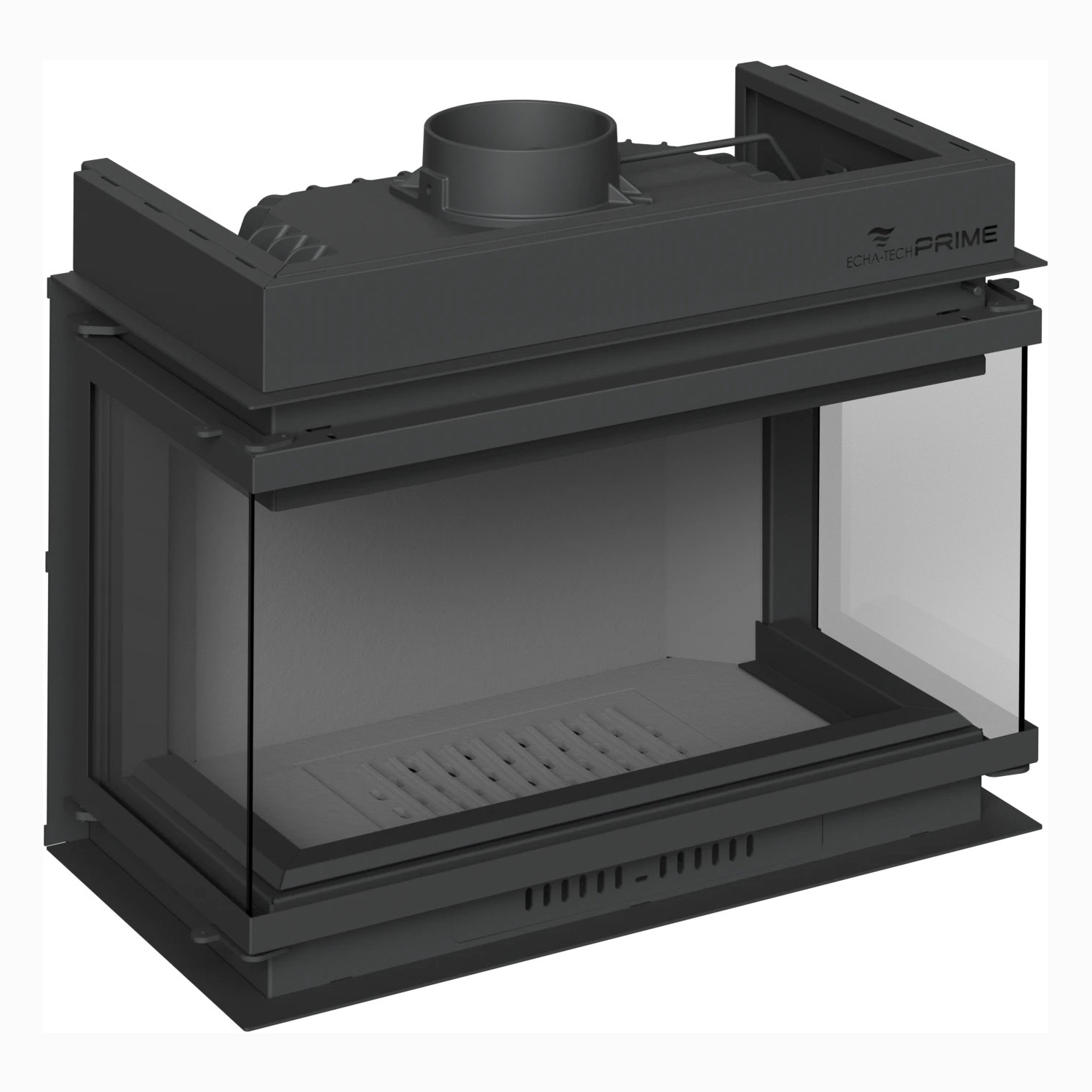 Les trois vitres de ce foyer offrent au spectateur la vision du feu sous tous les angles. Foyer fermé en acier avec intérieur en fonte, option vermiculite ou céramique. Système de double combustion étanche.